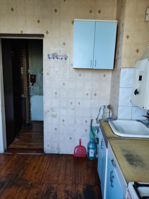 В квартирі є холодильник, стара газова плита, диван, шафа.