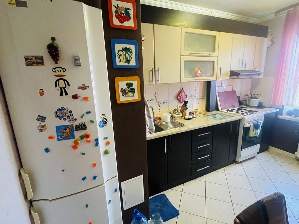 Кімната окрема, мебльована: ліжко, шафа, стіл. Є балкон. З техніки є пральна машина, холодильник.