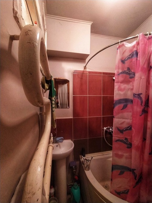 Общий санузел на 3 комнаты с душевой кабиной бойлером и стиралкой.
