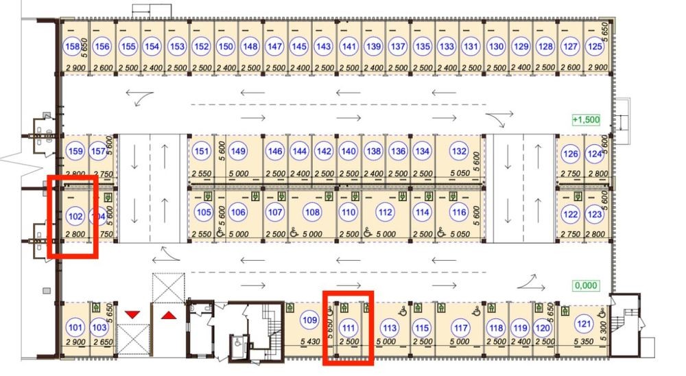 Знаходиться на 1- му поверсі, одразу при заїзді, зручне по розташуванню, поруч ліфт та сходи. Охорона, відеоогляд, шлагбаум.