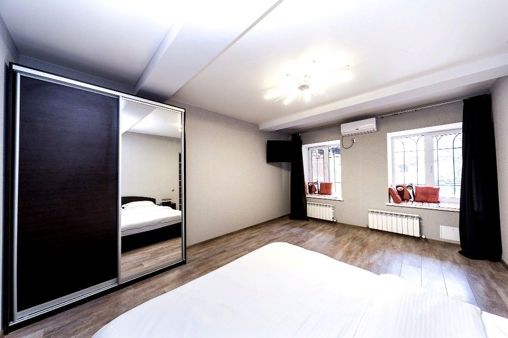 Исторический центр Киева, бул. Л. Украинки 9. Пешком до Крещатика 20 минут, столько же и до Печерской Лавры. Метро Печерская 350м. Хорошая 4-комнатная квартира после косметического ремонта. Чистота и уют. 3 отдельные спальни с 2-спальными кроватями, гостиная с угловым раскладным диваном, дополнительно есть раскладная односпальная кровать. Новые постельные принадлежности, укомплектованная кухня, скоростной интернет и SMART TV 4K 50', кондиционеры во всех комнатах, электробойлер и центральная теплосеть, балкон застеклён, есть городской телефон. Зелёный двор с бюветом, спортивной и детской площадками, со шлагбаумом и парковкой. В доме салон красоты и аптека, рядом кафе и рестораны, супермаркеты, банки, остановки транспорта. Цена до конца войны договорная и зависит от количества дней аренды и числа заселившихся, возможна аренда на любой срок