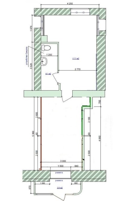 • Общая площадь 36 м2