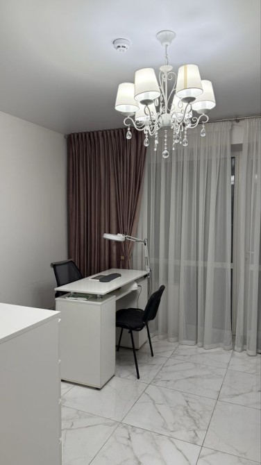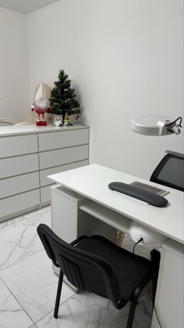Стіл манікюрний з встановленою витяжкою,лампою для освітлення та розетками .Виділений окремий великий комод для матеріалів.Також є педикюр не крісло з витяжкою (якщо потрібно).В студії є окрема кімната для стерилізації .Вхід до кабінета окремо з вулиці .Знаходимось поруч біля зупинки Зодчих.