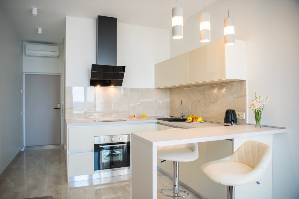 Кондиционер, Подогрев полов, Душевая кабина, Мебель на кухне, Пожарная сигнализация, Видеонаблюдение, Консъерж, Охраняемая территория, Парковочное место, Гостевой паркинг, Подземный паркинг, Лифт, Грузовой лифт, Автономный электрогенератор