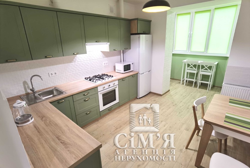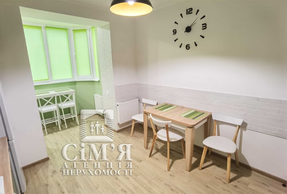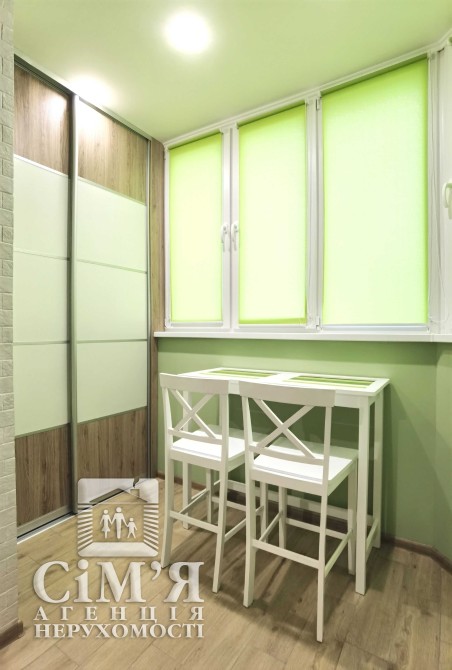Із кухні є вихід на лоджію з барною стійкою та двома стільцями з гарним краєвидом з вікна.