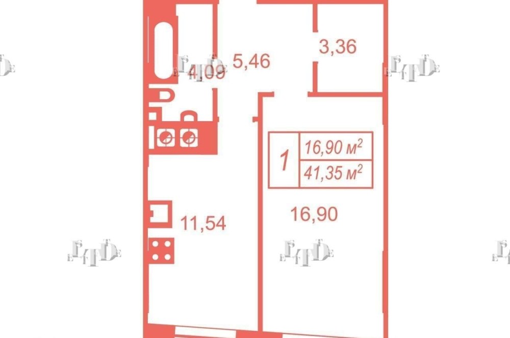 • Общая площадь 42 м2