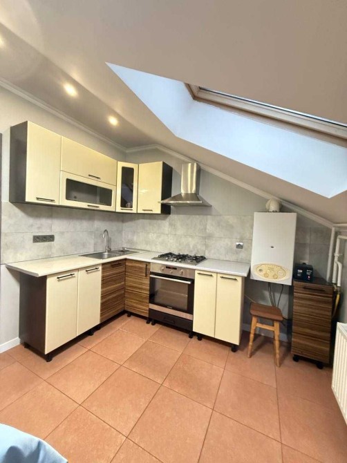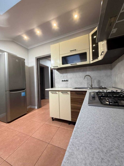 Роздільний санвузол, варильна поверхня, витяжка, електрична духова шафа , холодильник, обідній стіл та стільці