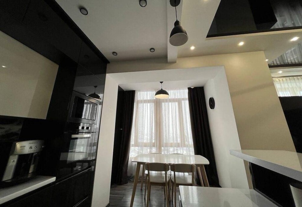 Оренда трикімнатної дворівневої квартири з якісним ремонтом та 2-ма санвузлами. Є вся небхідна побутова техніка. Індивідуальне опалення. Довгострокова оренда. Без тварин.
