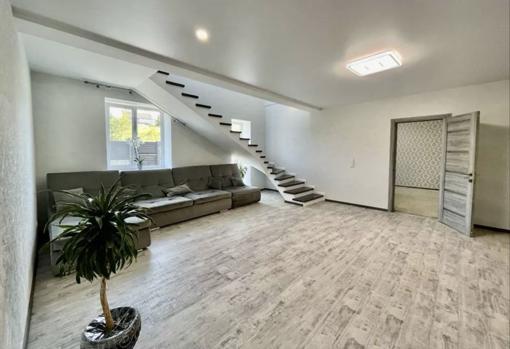 - Два поверхи, кухня, вітальня, чотири кімнати, 2 санвузли, підсобне приміщення