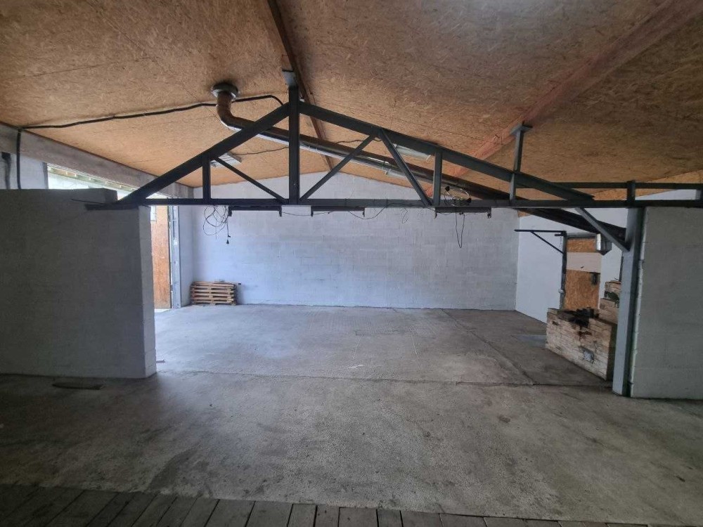 Здам в оренду гараж 9X9.2м, двоє воріт розмір 3X2.85м. Гараж без перегородки. Позаду гаража навіс 9x2м, вихід на природу. Оглядова яма 5x1м. Опалення. Висота потолка 3,60м. Електрика 380в.