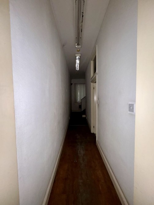 три великі кімнати (64,9 м², 42,5 м², 16,8 м²) із вітринними вікнами на фасад, кілька підсобних кімнат, санвузол і технічна зона.