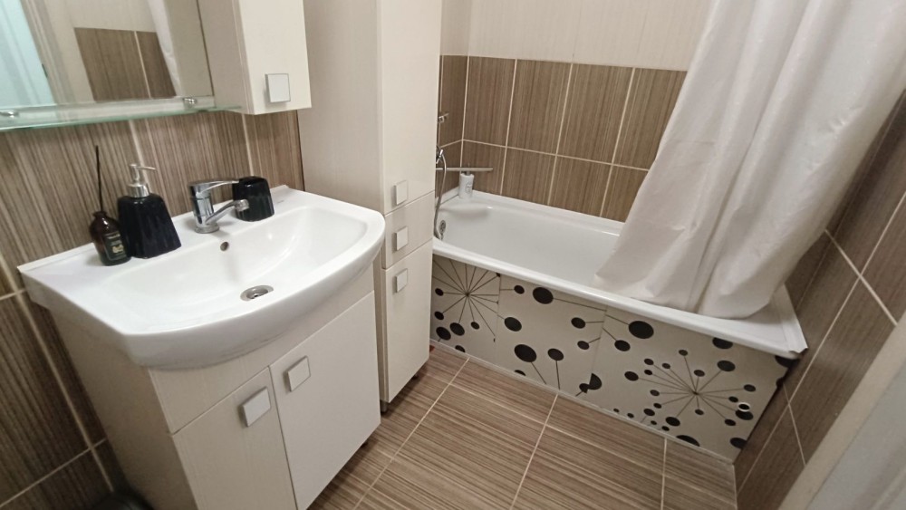 В квартирі є ліжко двоспальне, шафа, диван на кухні, як додаткове спальне місце, холодильник, пральна машина, газова варочна поверхність, ТВ.