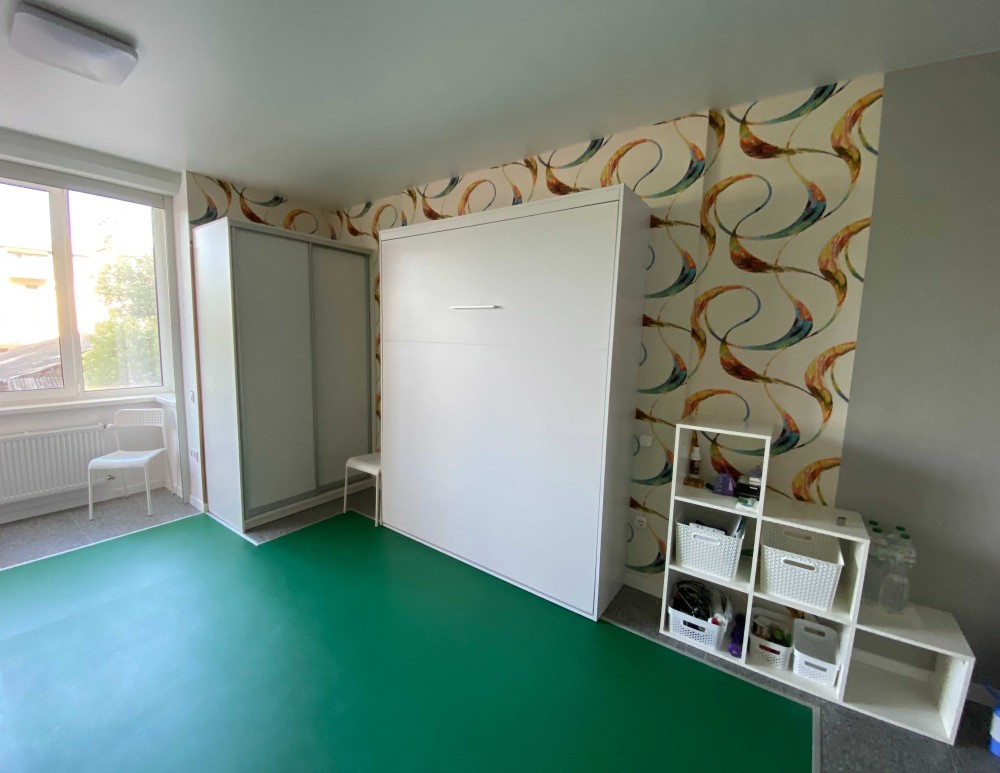 (ідеально для однієї людини чи пари) з високою стелею, якісним ремонтом і устаткуванням (тепла підлога, посудомийка, смарт меблі, система фільтрації води, рекуператор і т.п), двері і вікна замінені, є всі лічильники (вода, електрика (2-зонний лічильник), тепло) є захисні ролети на лоджію. Все робилось в першу чергу для себе.
