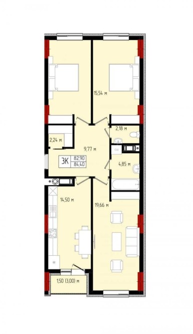 • Трехкомнатная