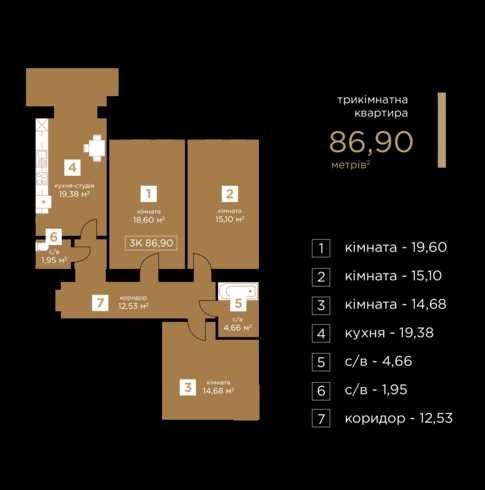 Площа — 86,9 м² | 7 поверх із 10 |