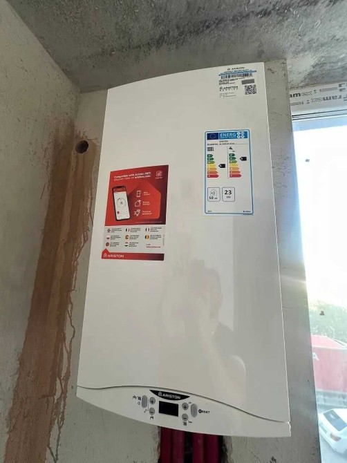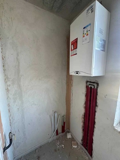 В квартирі вже встановлено котел, зроблено розводку теплої підлоги та води, залита чистова стяжка.