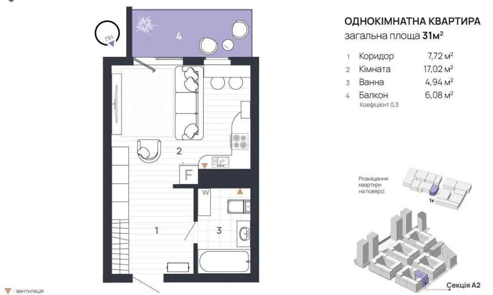 • Общая площадь 31 м2