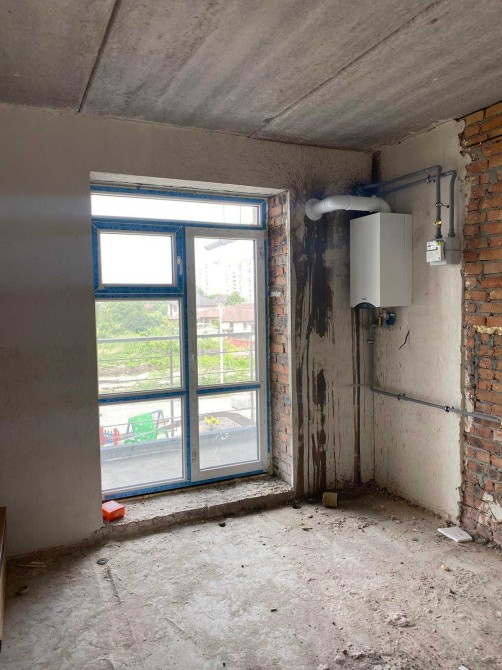 Від забудовника такі роботи: :стяжка, чорнова штукатурка, котел, розводка електрики, лічильники..