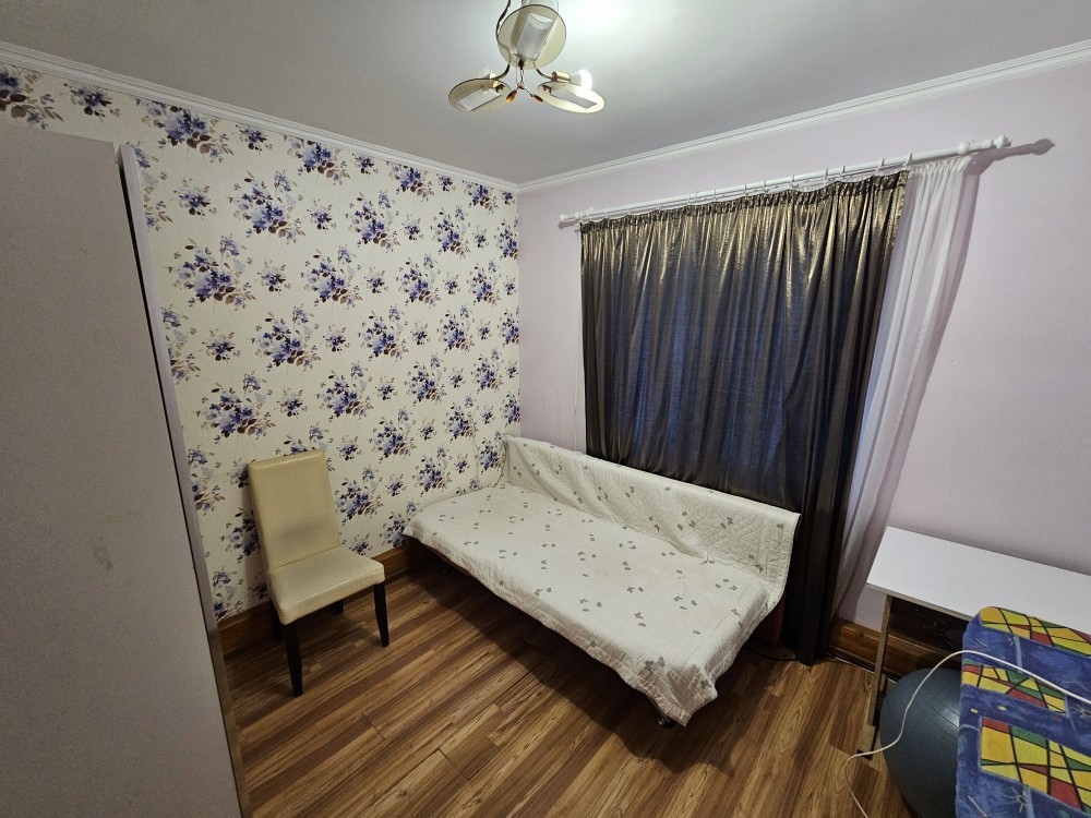 Функціональна кімната з розкладним диваном, шафою для речей, столом та дошкою для прасування одягу. Чудово підходить як для дитини, так і для робочого кабінету або гостьової кімнати.