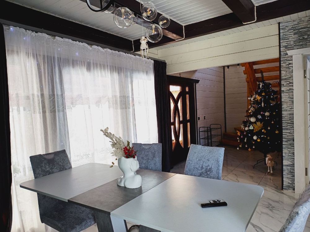 Новенький будинок повністю з натурального дерева на 8 місць в с. Микуличин. Асфальт до самого будинку. В котеджі є 4 спальні, 2 санвузла, зал, кухня, тераса. Також є джип у гори. Поруч є чан, річка, магазин
