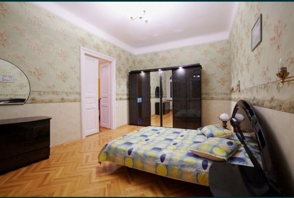 Исторический центр Киева, бул. Л. Украинки 9. Пешком до Крещатика 20 минут, столько же и до Печерской Лавры. Метро Печерская 350м. Хорошая 4-комнатная квартира после косметического ремонта. Чистота и уют. 3 отдельные спальни с 2-спальными кроватями, гостиная с угловым раскладным диваном, дополнительно есть раскладная односпальная кровать. Новые постельные принадлежности, укомплектованная кухня, скоростной интернет и SMART TV 4K 50', кондиционеры во всех комнатах, электробойлер и центральная теплосеть, балкон застеклён, есть городской телефон. Зелёный двор с бюветом, спортивной и детской площадками, со шлагбаумом и парковкой. В доме салон красоты и аптека, рядом кафе и рестораны, супермаркеты, банки, остановки транспорта. Цена до конца войны договорная и зависит от количества дней аренды и числа заселившихся, возможна аренда на любой срок