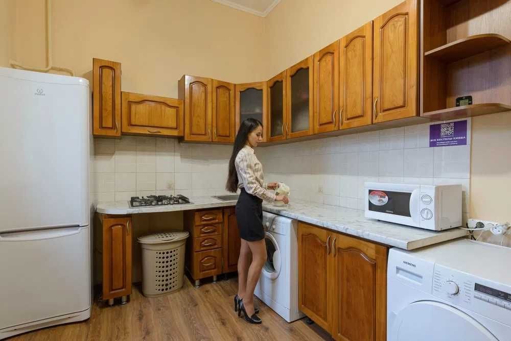 — Современная бытовая техника: два больших холодильника, микроволновая печь, телевизор, электрочайник, утюг, фен. Также стиральная машина, стирка в которой включена в стоимость.