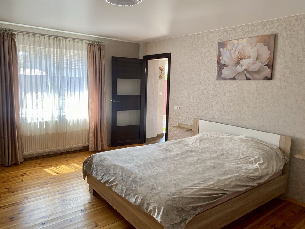Код объекта 215 Сдается в посуточную аренду уютный современный дом с красивым зеленым участком. Тихий двор с прекрасным садом, просторная летняя терраса и мангальная зона для отличного времяпровождения с семьей и друзьями. Рядом с домом пляж, река Десна, лес. Самое удачное место для отдыха на природе. Дом с отличным современным ремонтом, пять раздельных спален, большой зал с камином, два санузла, 14 спальных мест. Есть все необходимое для комфортного проживания. дом может разместить максимально до 20 человек днем и до 14 на ночевку Заезд 14:00 выезд 12:00 цены зависят от количества людей: с пн по чт от 10000 грн в выходные от 13000 грн