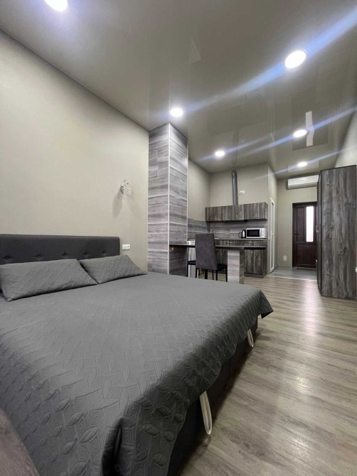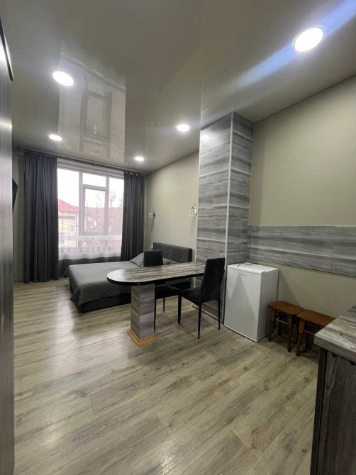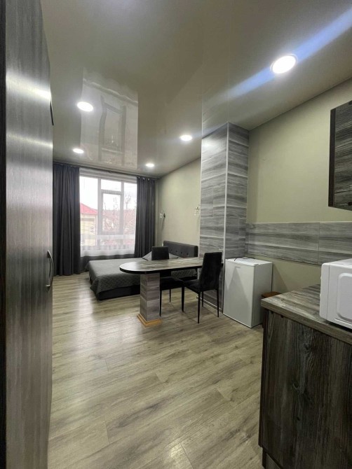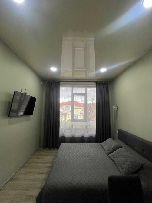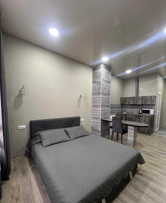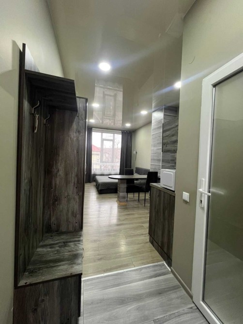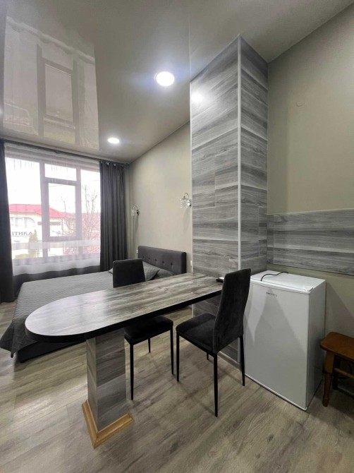 Здається квартира студія з євроремонтом в місті Моршин . Зручне місцерозташування, паркова зона, до центрального бювету мінеральних вод – всього 2 хвилини ходьби. В апартаментах є всі зручності для вашого відпочинку (Wi-Fi, телевізор 43 діагональ, кондиціонер, праска, фен, чайник, мікрохвильова і мультиварка для приготування їжі, холодильник, рушники, хороше двох спальне ліжко з ортопедичний матрацом). Нові та сучасні меблі.