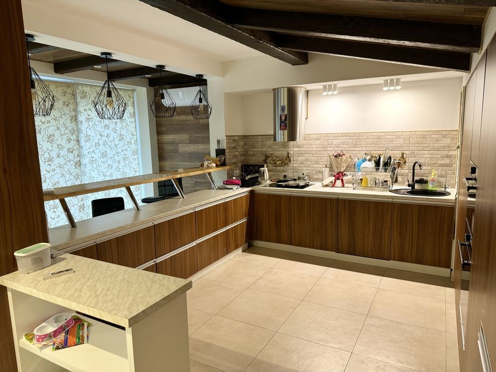 Загальна площа будинка з цокольним поверхом 233.9 кв.м, із них цоколь 115.2 кв.м, житлова площа 77 кв.м., кухня-столова 35 кв.м.