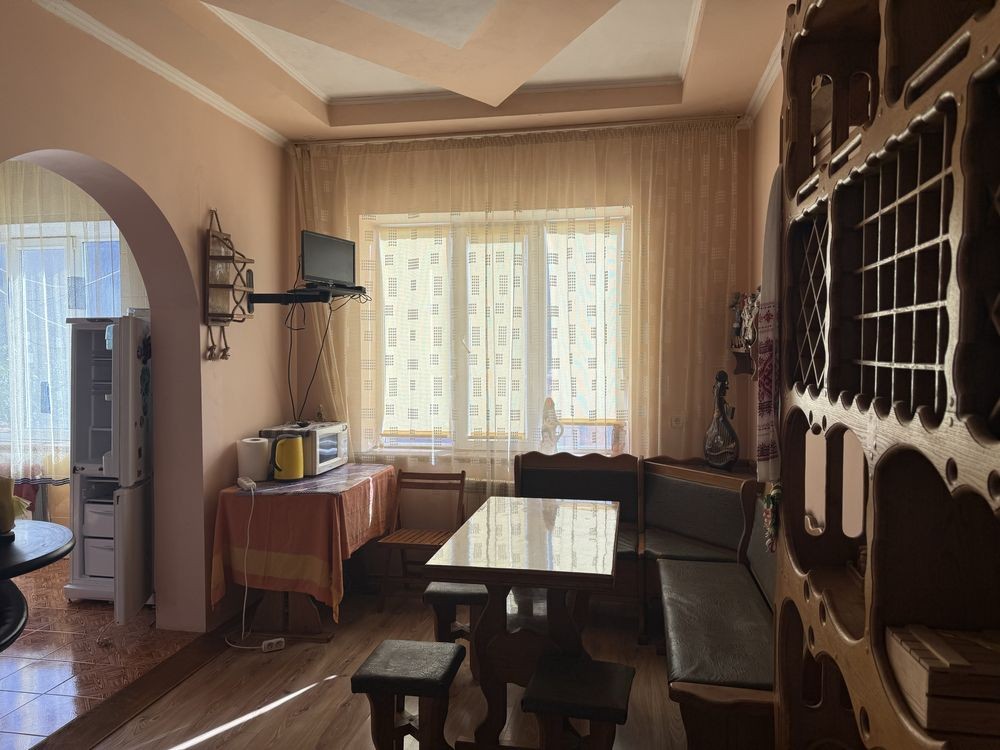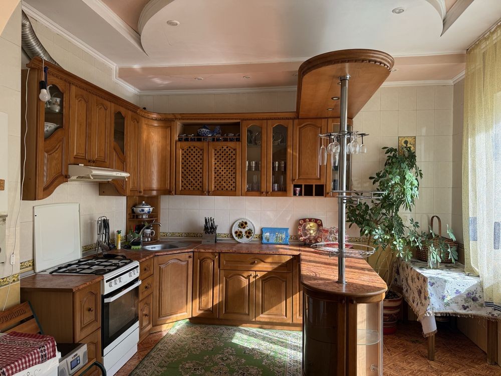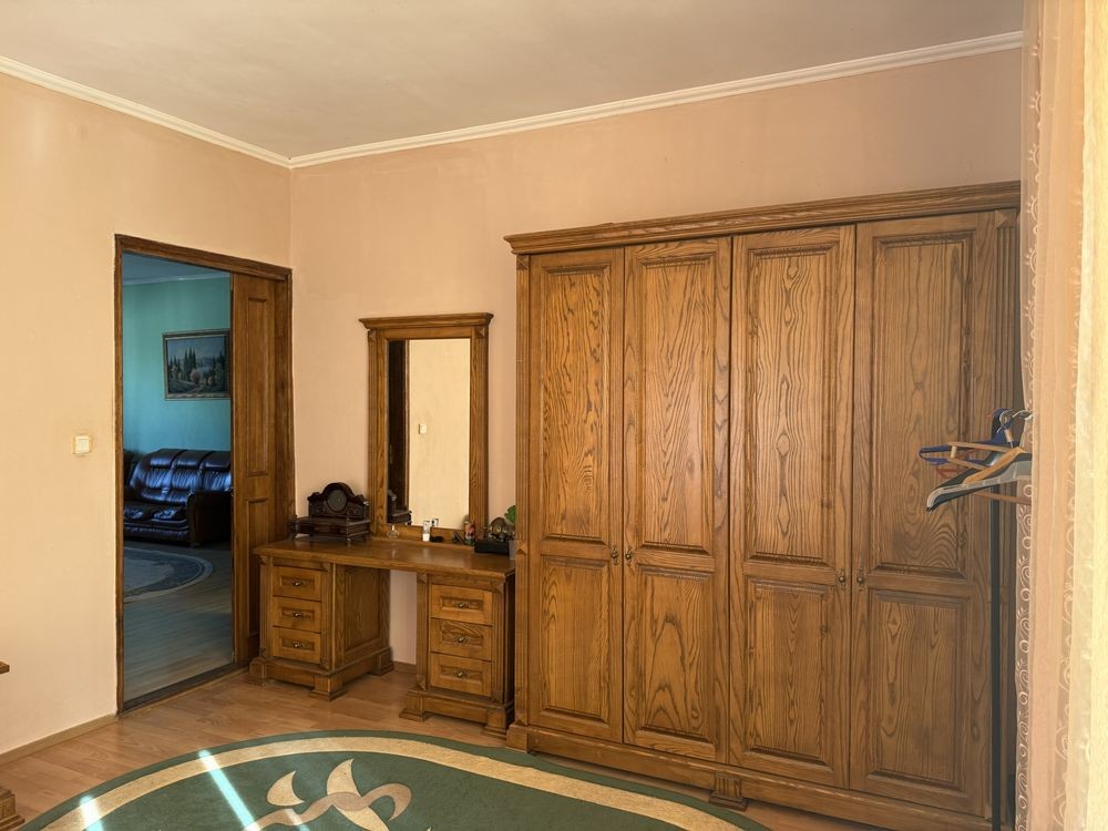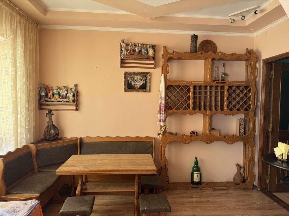 Будинок складається з веранди, коридору, прохідної вітальні, трьох окремих спалень,кухні та їдальні. Залишаються всі меблі та техніка. Меблі з натурального дуба.