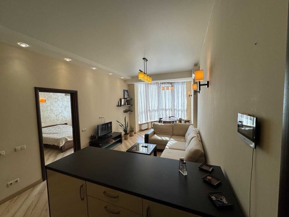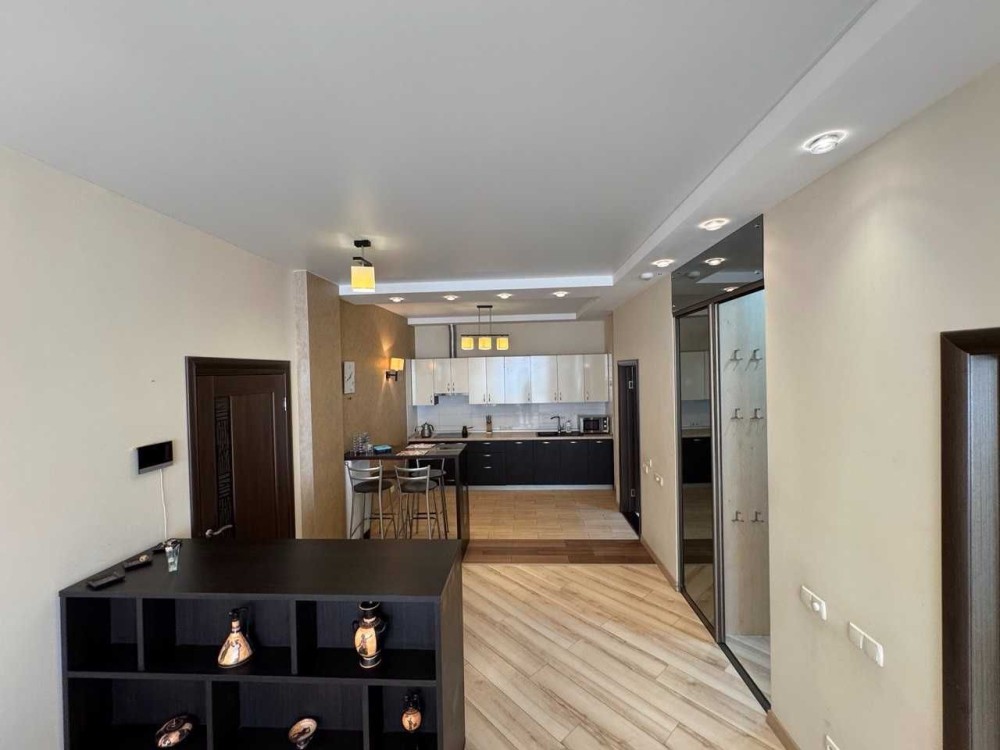 Окрема спальня та велика кухня студія. Санвузол суміщений. Ванна.