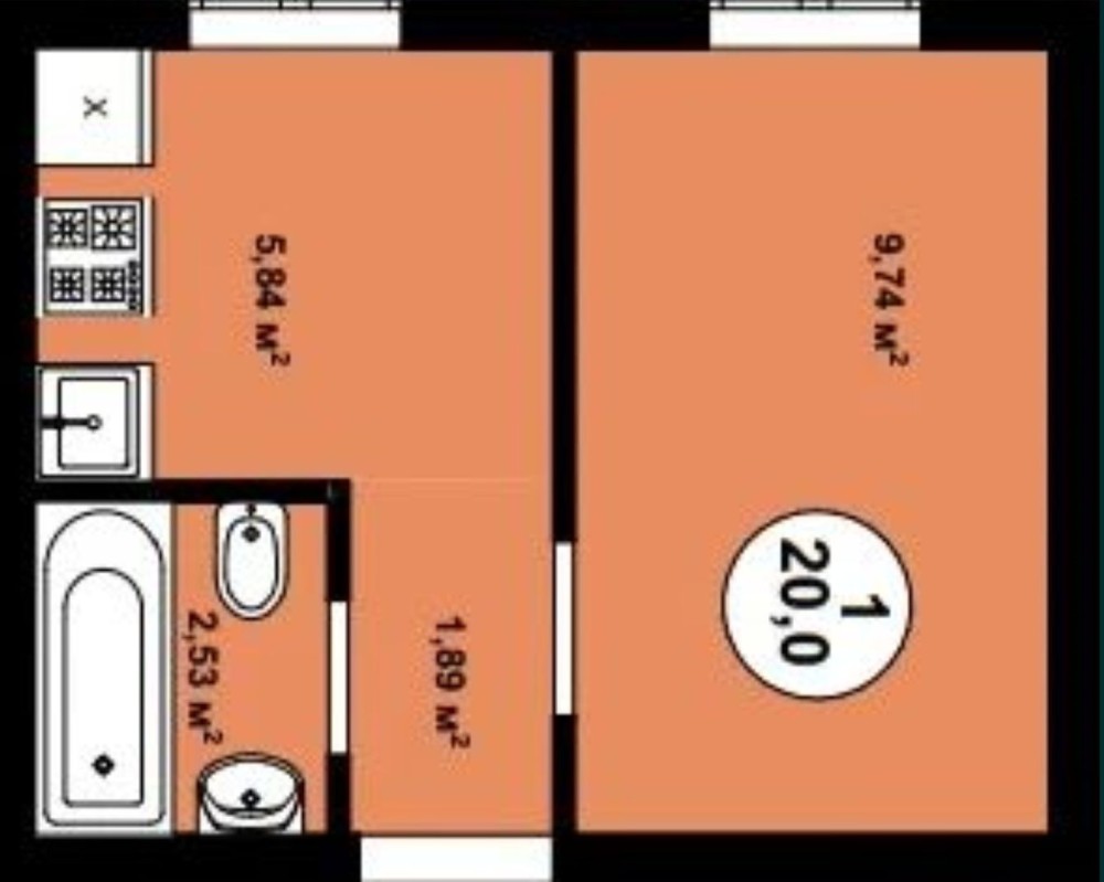 • Общая площадь 20 м2