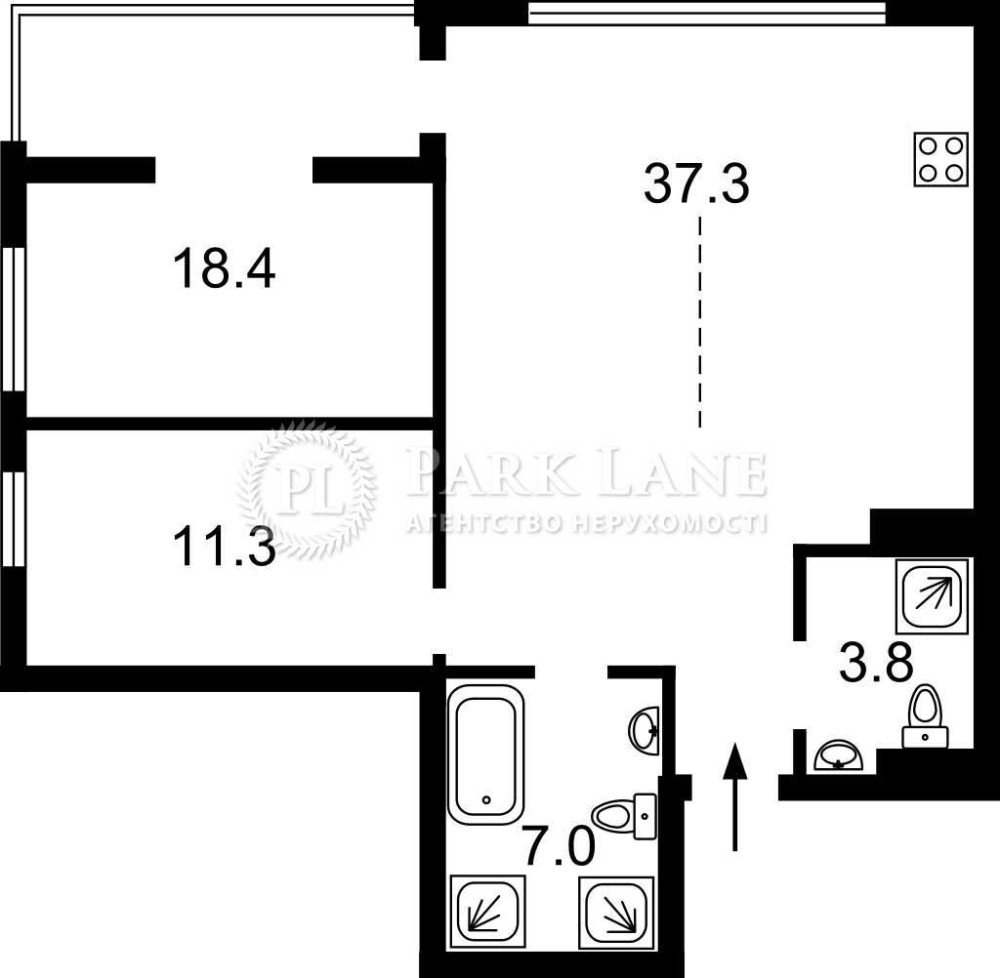 • Площадь кухни 38 м2