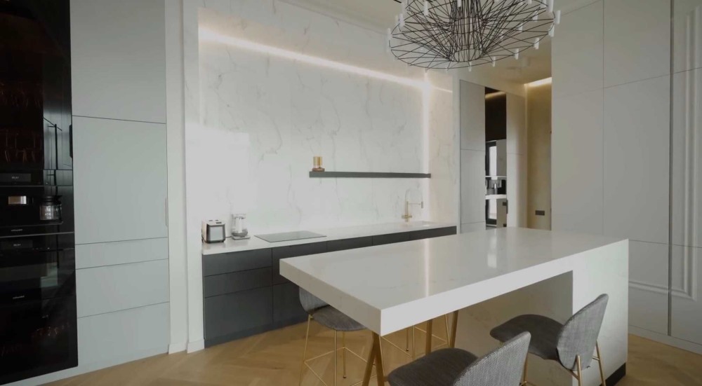 Дизайнерське освітлення, дорогі меблі, натуральні матеріали та грамотне планування створюють ідеальний простір для життя. У квартирі встановлений кондиціонер, підігрів підлоги та є гардероб.