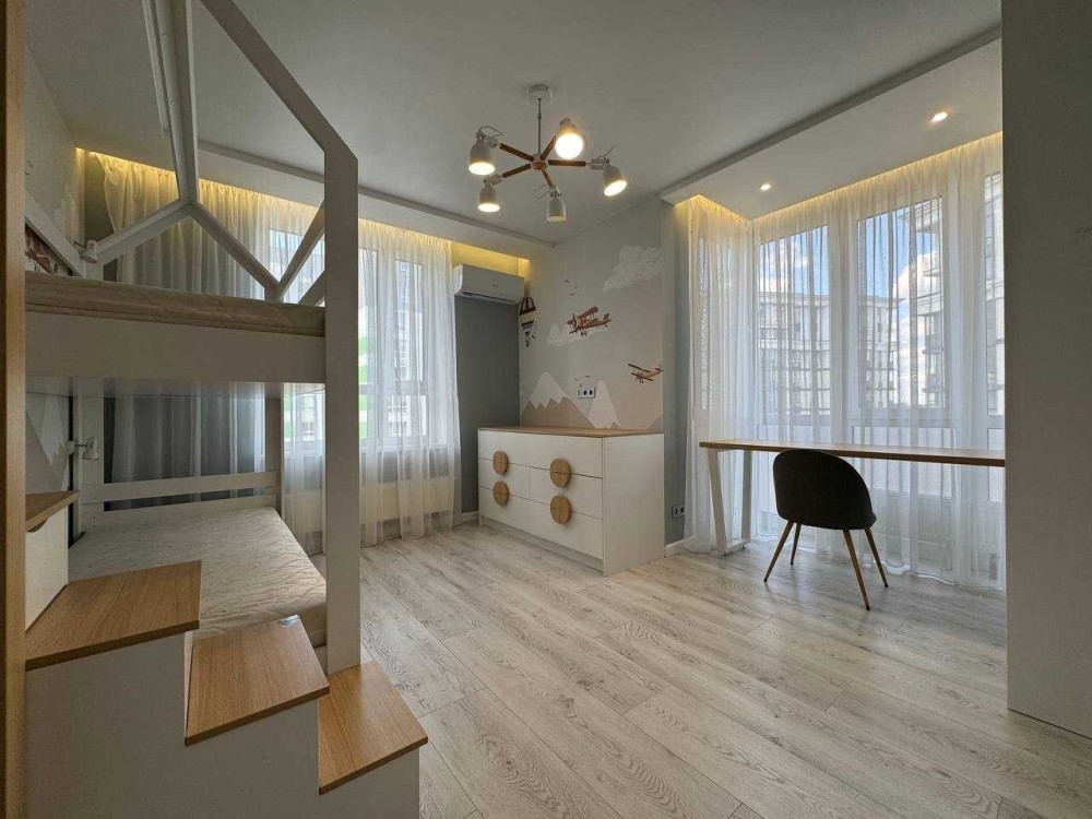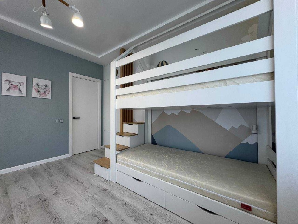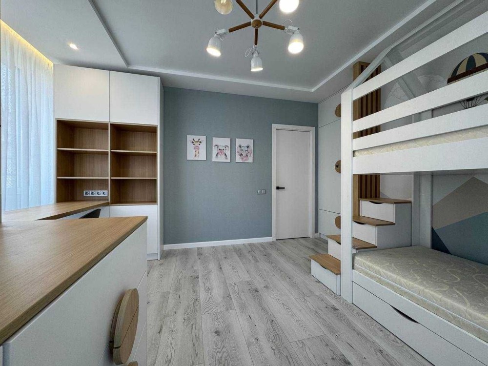 75 м²: кухня-вітальня 37 м², спальня, дитяча, 2 санвузли (ванна + душ), гардеробна