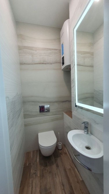Ремонт із дорогих матеріалів! Кухня вітальня 55м2, 2 кімнати 15м2 та 18м2, 2 санвузли в одному санвузлі вікно. Висота стелі 3 м.