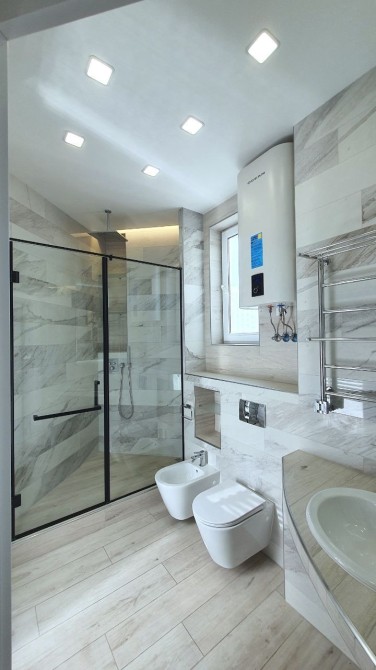 У квартирі встановлено 3 кондиціонери, 2 бойлери. Сантехніка Італія, вбудований змішувач у душовій Grohe з тропічним душем, інсталяція Geberit