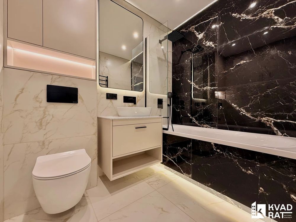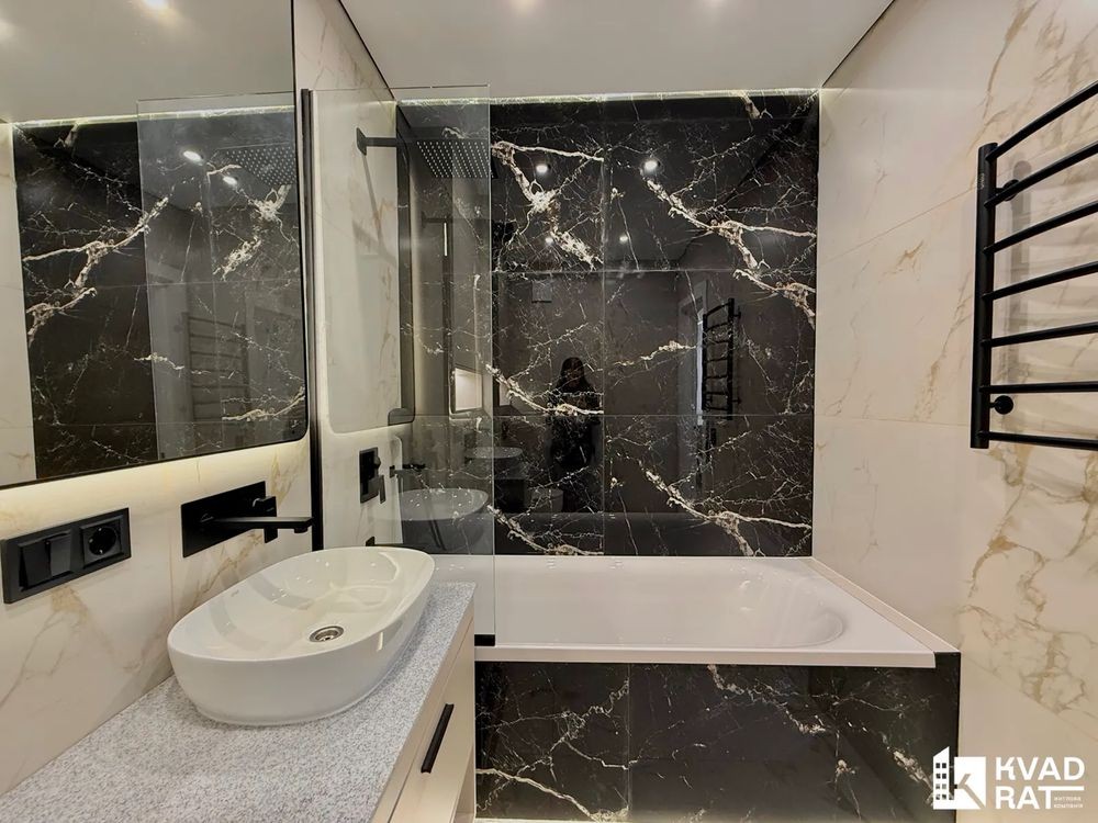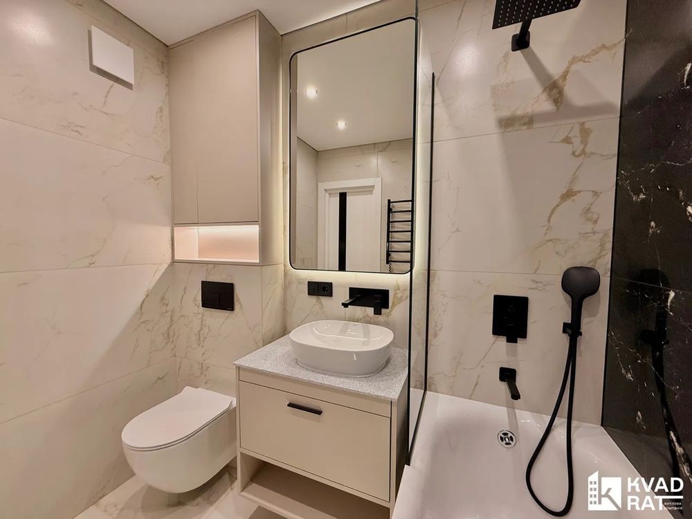 - Санвузол з ванною та тропічним душем, інсталяцією, умивальником.