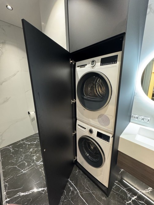 посудомийна машина, пральна і сушильна машини, духовка, мікрохвильова піч, варильна поверхня, бойлер, 3 кондиціонери, 2 телевізори, оптоволоконний інтернет 1 Гб.