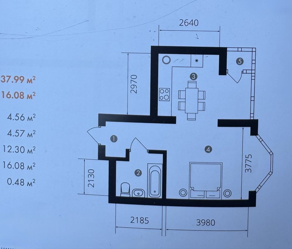• Общая площадь 38 м2