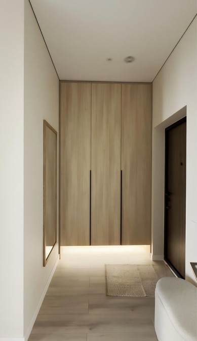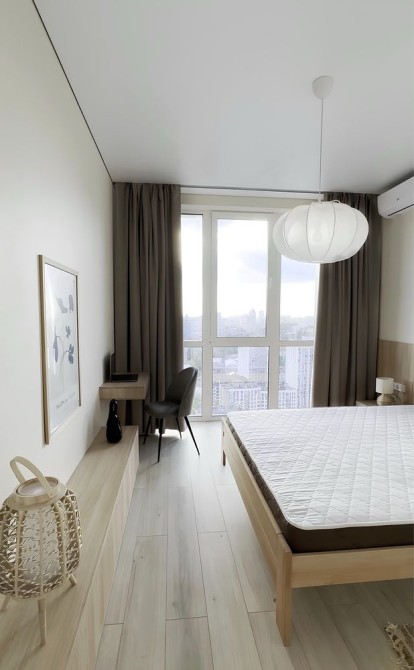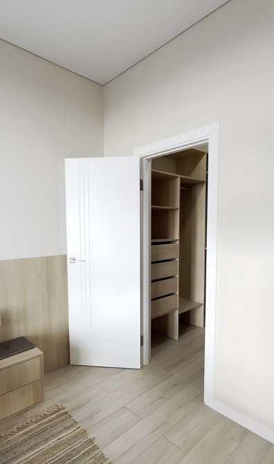 • Велике двоспальне ліжко 200×180, повноцінна гардеробна з полиць та стелажів.