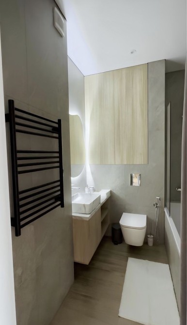 • Зручності: пральна і сушильна машини, 2 кондиціонери, бойлер, у ванній — тепла підлога, велика LED-підсвітка, великий телевізор.