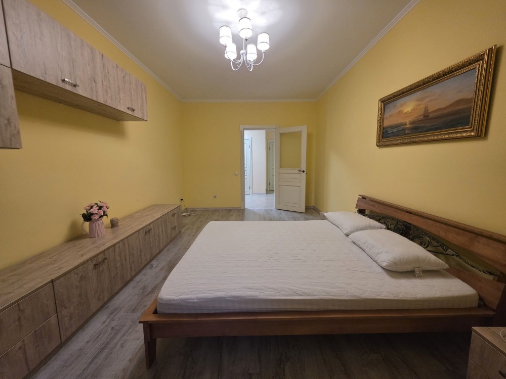 Просторе планування з двома великими спальнями, роздільним санвузлом та балконом з виходами зі спальні та кухні. Багато вікон, високі стелі 2.8 м..