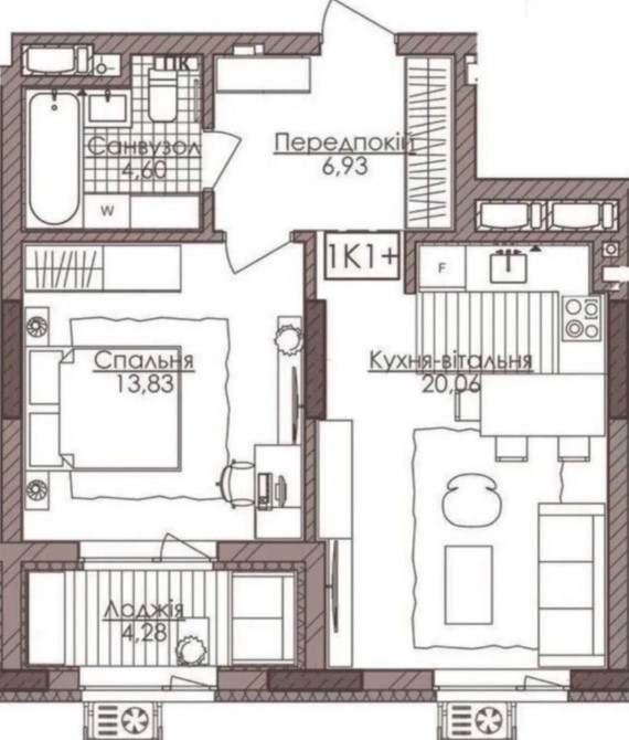 Продається однокімнатна квартира з функціональна плануванням на 9 поверсі: