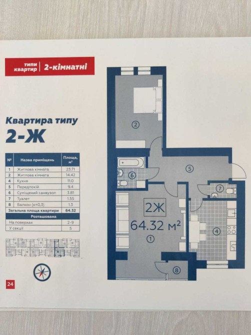 ЖК Київський Буча 2к квартира 64.33м2 Цегляний дім - фото 5
