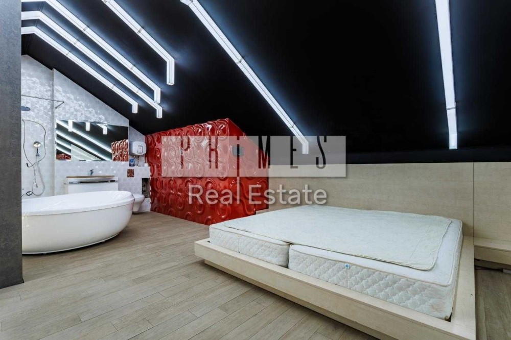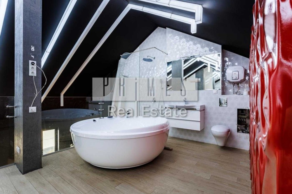 Свіжий ремонт, є вся побутова техніка, 3 кондиціонери на кожному поверсі, включаючи холодильник, фільтри для води(питної - з мінералізатором), ТВ-розетки та інтернет-точки, Wi-Fi, лічильники води та опалення. Встановленно сигналізацію Ajax. Меблі на замовлення, переважно-дубові, 4 великих шафи-купе і вбиральня, на 1 и 3 поверсi.