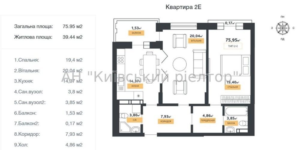• Общая площадь 75.95 м2