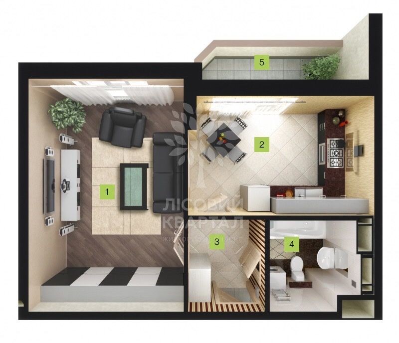Продам в ЖК Лесной Квартал 1 комнатную квартиру (42,3 м2) в центре Броваров, с видом на лес. Правам собственности больше 3-х лет.