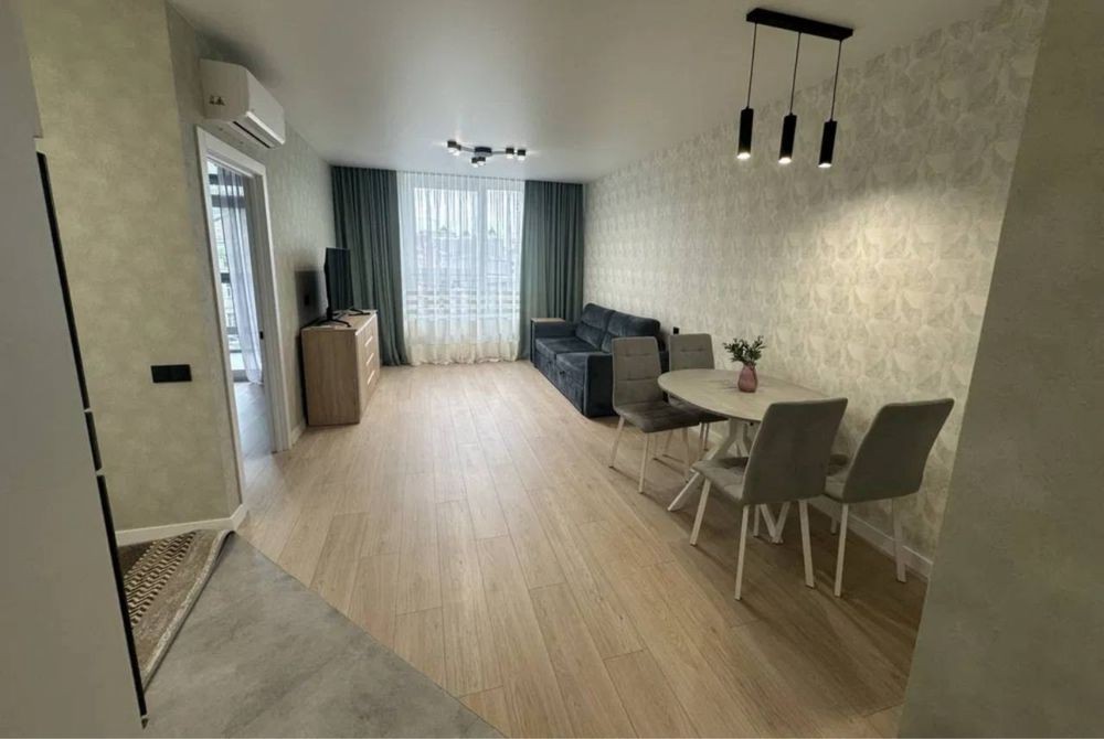 Квартира укомплектована всією необхідною технікою, простора зона відпочинку з великим телевізором.