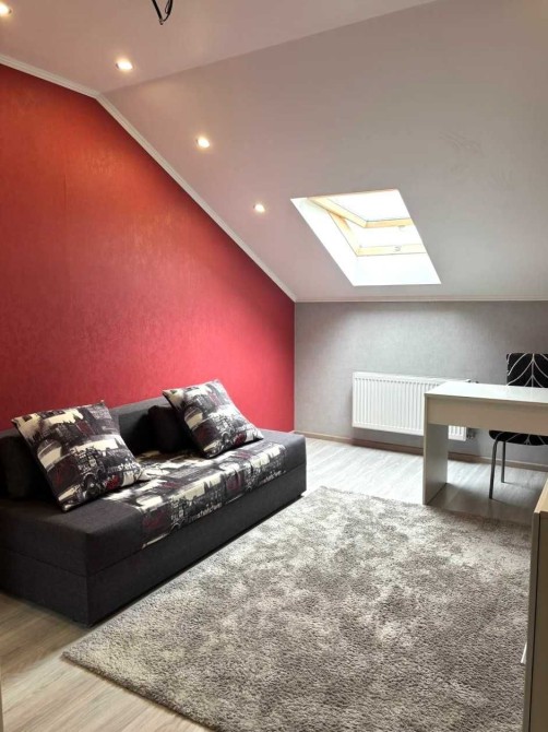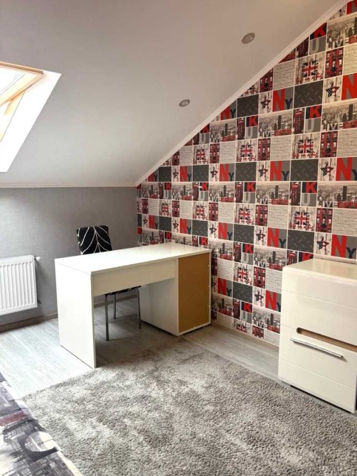 • 2-й рівень — три окремі кімнати (21, 14 і 12 кв.м), санвузол та гардеробна кімната